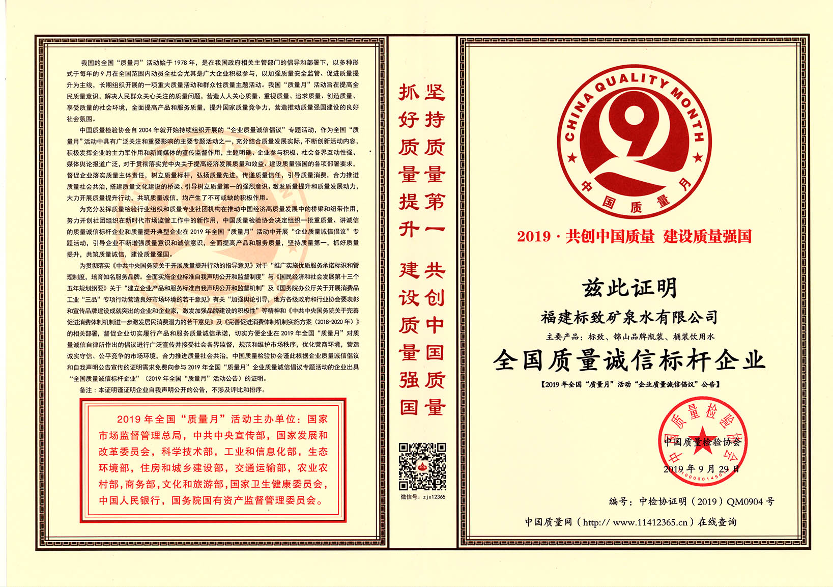 • 2020-03-252019年9月,標致公司榮獲“全國飲用水行業質量領先企業”稱號